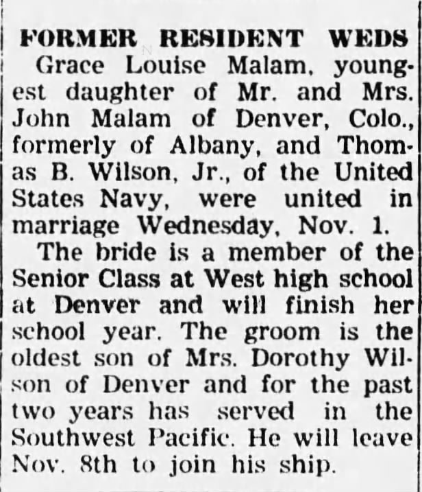 Thomas was born in Denver, CO., to Beverly and Dorothy Frances Floyd Wilson who married in Littleton, Co., on Jun 20, 1925.