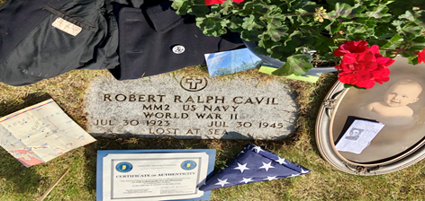 Thank you SO much for doing this memorial! I just received my Legacy flag* on Thursday - flown in honor of my great-cousin Robert Ralph Cavil, MM2 along with the certificate, and a photo of his name on the memorial and of a flag flying. It brought me to tears!
