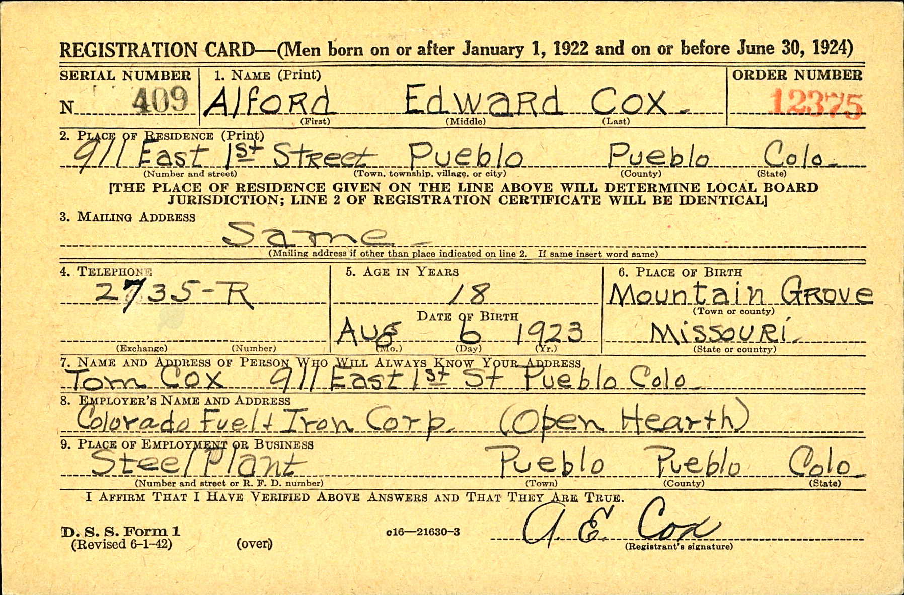 Name: Alford Edward COX