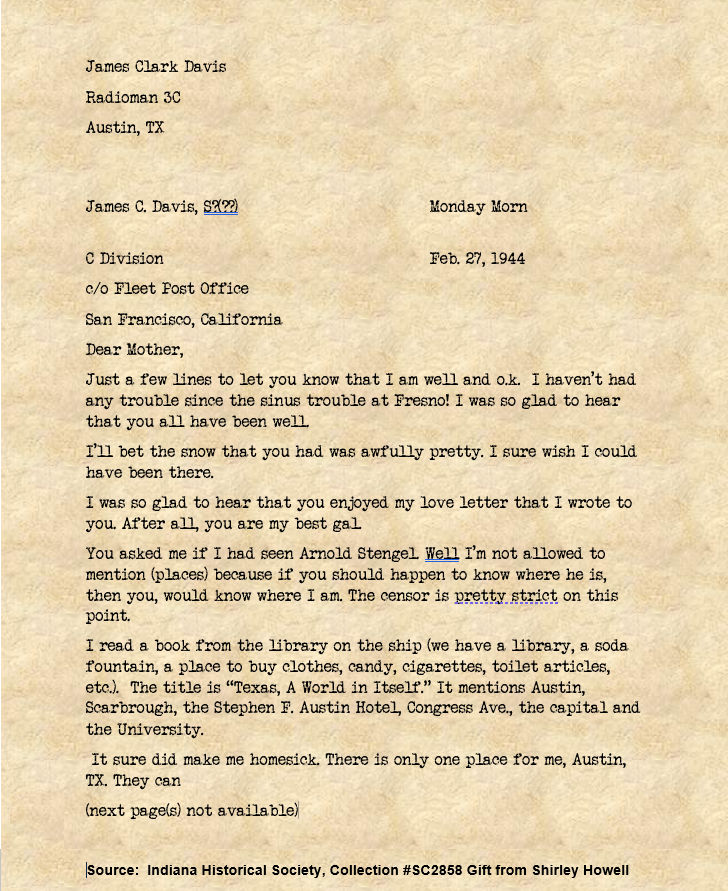 Radioman Third Class James Clark Davis is the sailor in the middle below. Davis was Lost at Sea as a result of the sinking of USS Indianapolis on July 30, 1945. Pictured on the right of Davis is Radioman Second Class Robert Arnold Rutherford who was also Lost at Sea with the sinking. To Davis’s left is Ralph Johnson who was a former shipmate of both men. Ralph was not onboard Indianapolis when it was sunk.