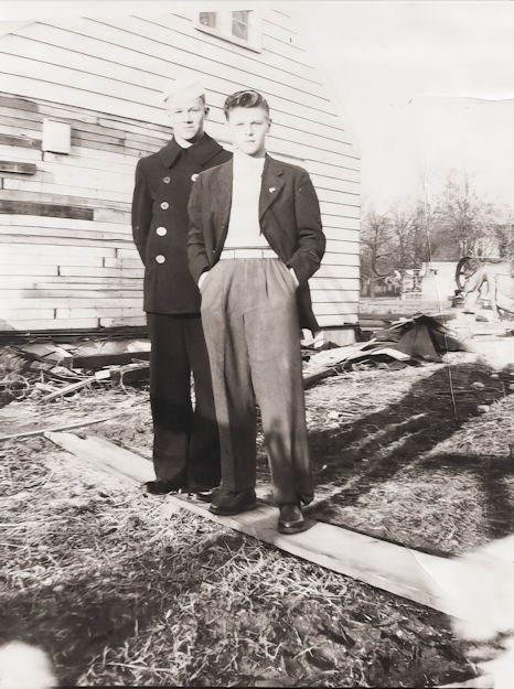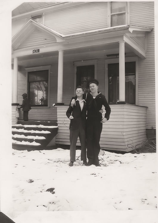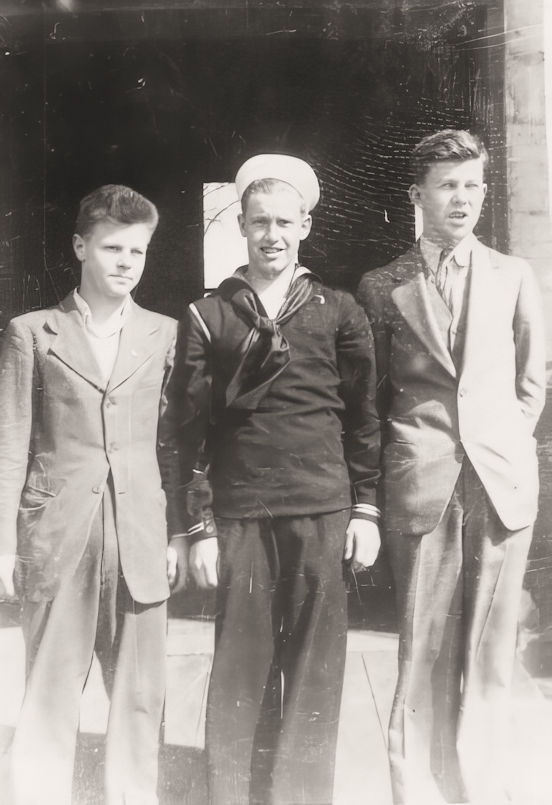 He came home June 11, 1945, for a short rest, returning to San Francisco, California, July 2nd. He then spent two days with his brother, James Ralph Dimond, seaman 1/c, at Port Chicago, California. After that he returned to his ship and after going on a shake-down cruise, left the United States, July 16, 1945, with a crew of 1,195 officers and men, on a high-speed run to Pearl Harbor, on which they set a new record for fast time.