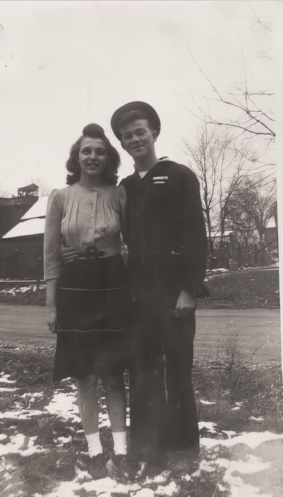 He returned home from the Pacific November 9, 1944, returning to his ship November 29th, leaving the states again the latter part of December, when he participated in battles at Iwo Jima, Tokyo and Okinawa. On March 31st he was wounded at Okinawa, when an enemy suicide plane crashed into his ship. At that time nine lives were lost and twenty men were wounded. John was taken aboard the U.S.S. Solace, hospital ship, and taken to a naval hospital on Guam where he underwent the amputation of his left fifth toe. At this time Admiral Raymond A. Spruance was aboard the ship. He received the Purple heart on April 3, 1945 in appreciation of the splendid performance of his duty even at the risk of personal injury to himself.