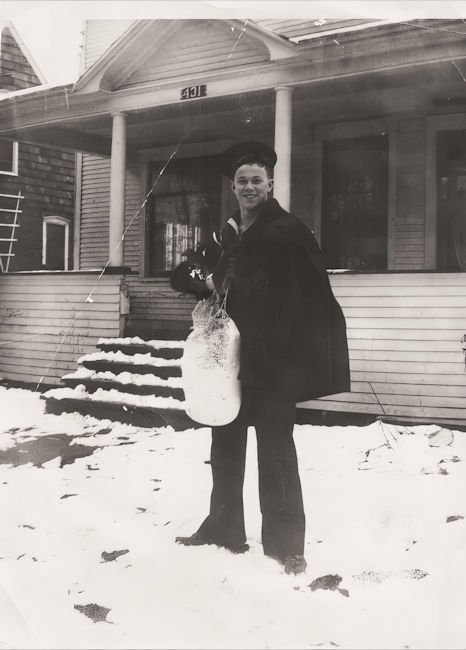 He was newsboy for the Lansing State Journal for two years. He also worked at the Kroger Store and with the Morning Star, as carrier and mimeograph operator. He was with the Wilcox-Gay Corporation when he entered the service.