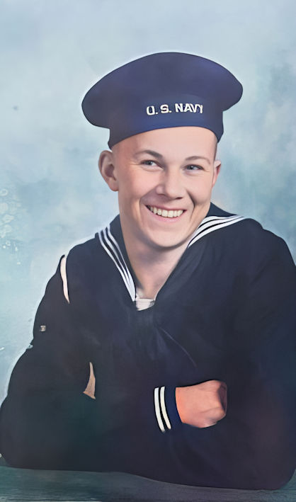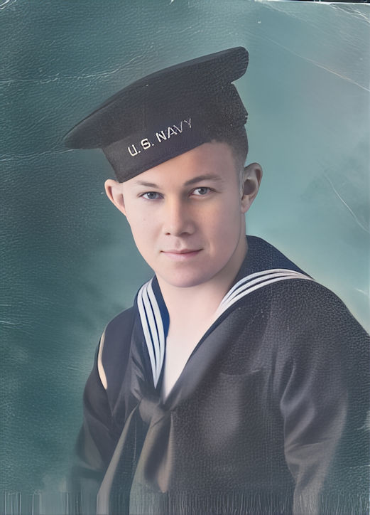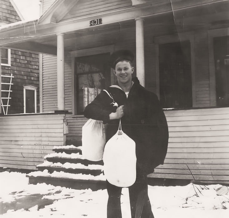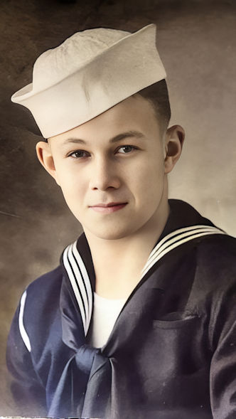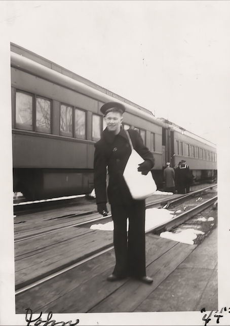 John entered the service of his country January 28, 1944, and received his boot training at Camp Hill, Farragut, Idaho. He was on boot leave March 14th until March 29, 1944, after which he was sent to Shoemaker, California, and from there to Treasure Island, where he was put on board the USS Indianapolis, April 26, 1944, and sent to the Pacific theater of war.