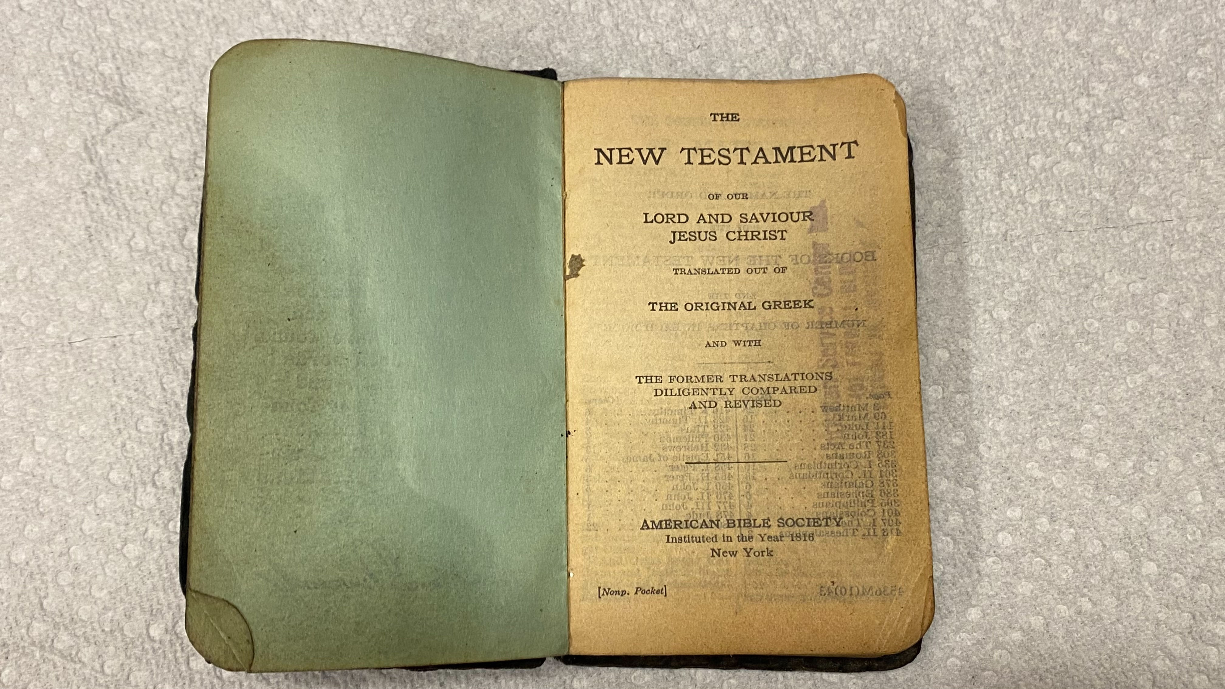 These photos are followed by multiple pictures of a New Testament Bible that was given to John when he joined the U.S. Navy. Please take note of the message written on a dedication page by U.S. President Franklin D. Roosevelt.