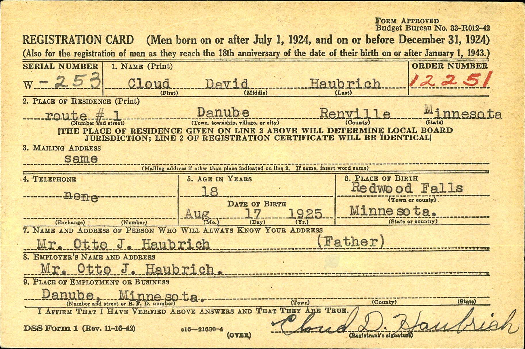 Parents: Otto Joseph Haubrich and Victoria Rosella Haubrich