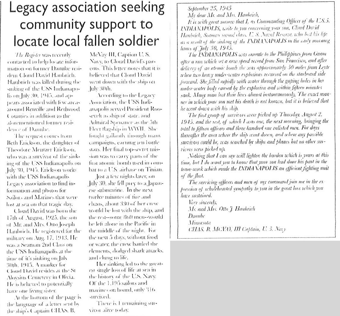 From: Danube, MN