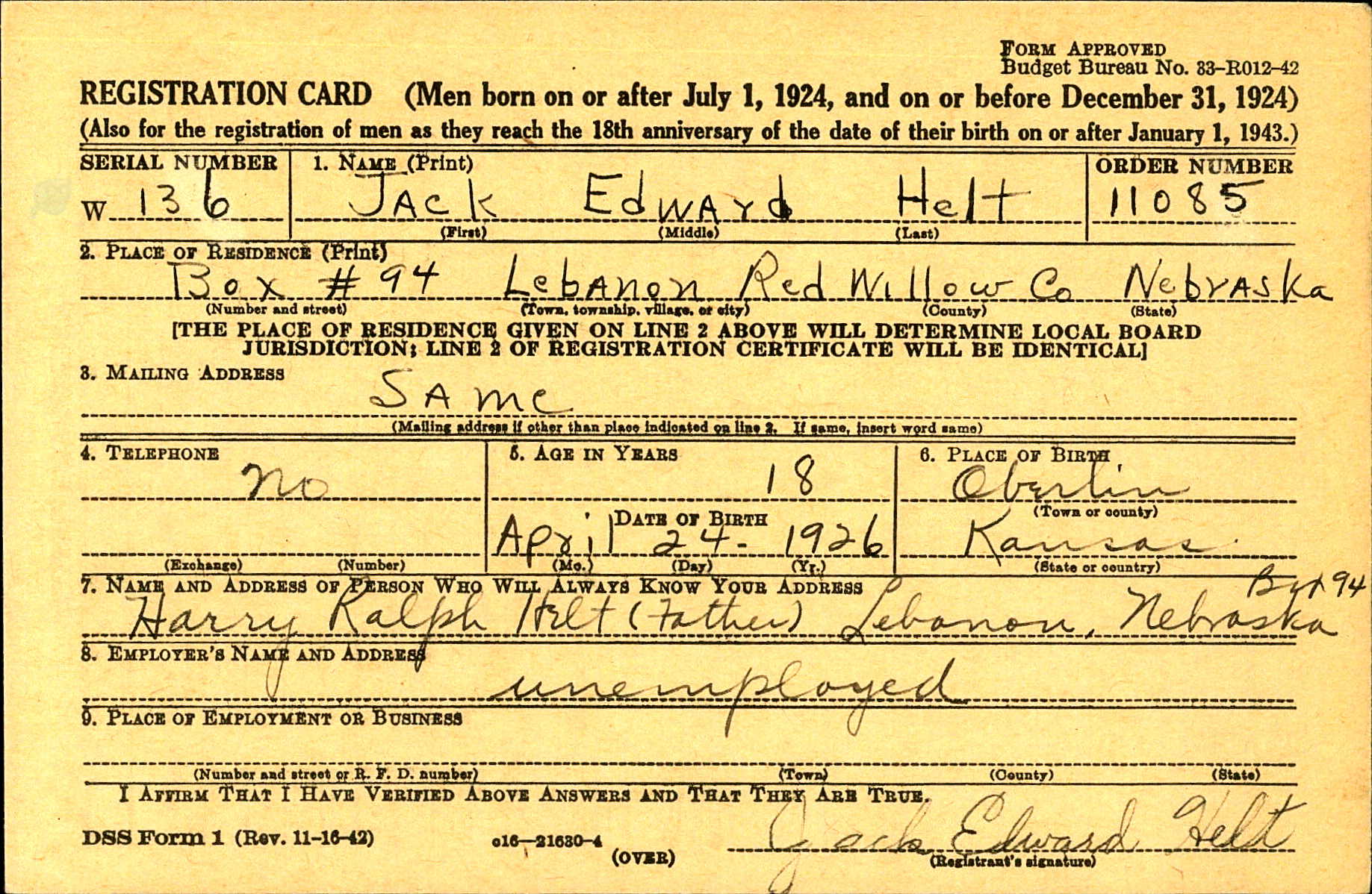 Name: Jack Edward HELT
