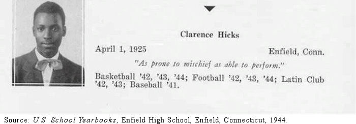 According to childhood friends who spoke about him for a 2016 Memorial Day article in the local Journal Inquirer, Clarence was the only black student in his class at Enfield High and was an exceptional athlete. The friends characterized him as quick, fast, and very "wiry".