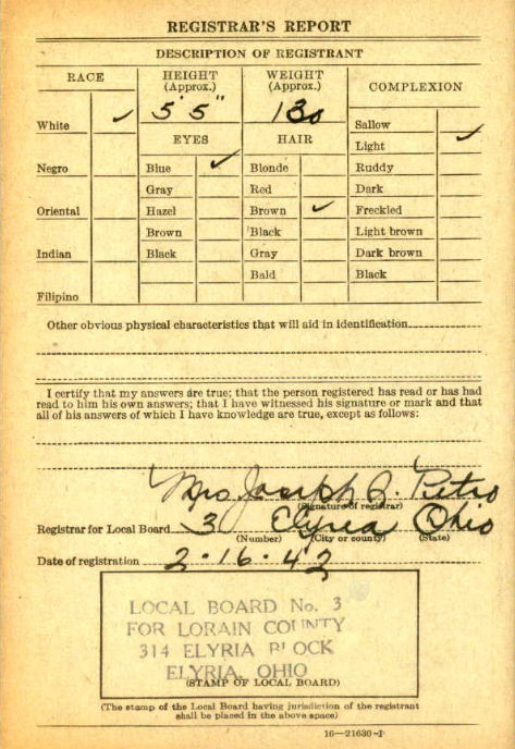 Ercel entered service on September 7, 1942 in Cleveland, Ohio.