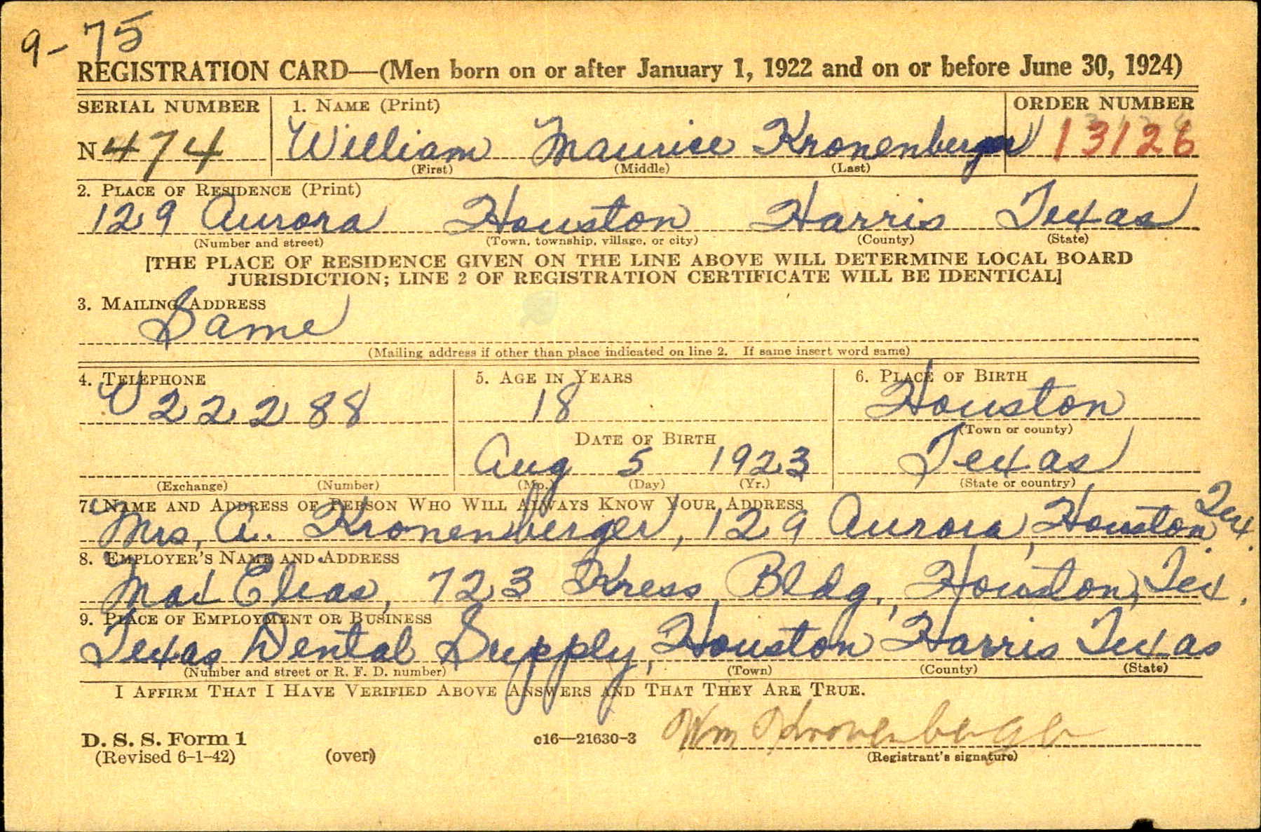 Name: William Maurice KRONENBERGER
