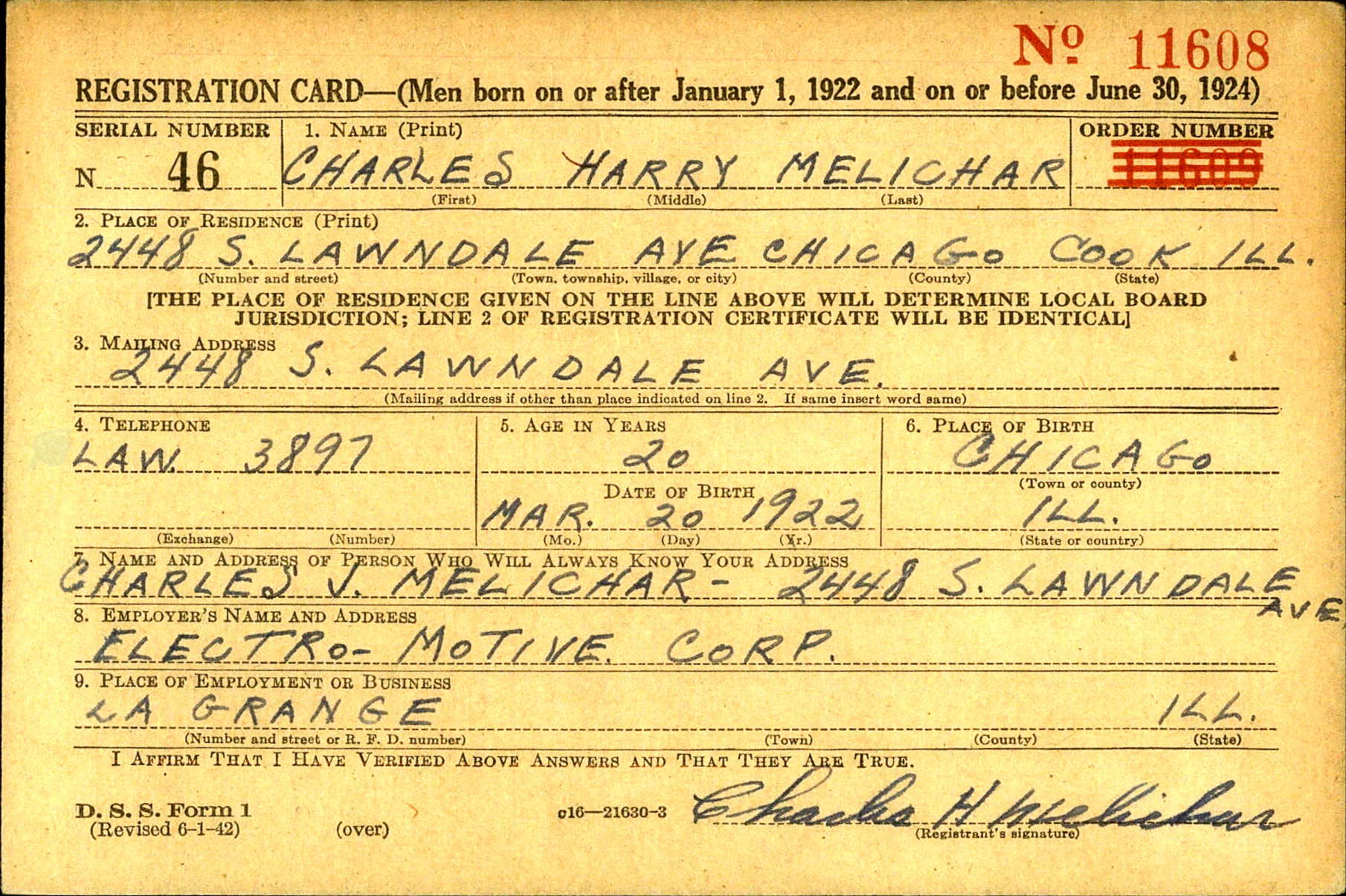 Name: Charles Harry MELICHAR