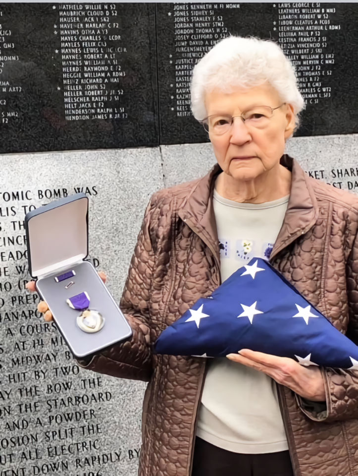 On July 24, 2015, Leretta visited USS Indianapolis Memorial and accepted Carl's flag as it was lowered.