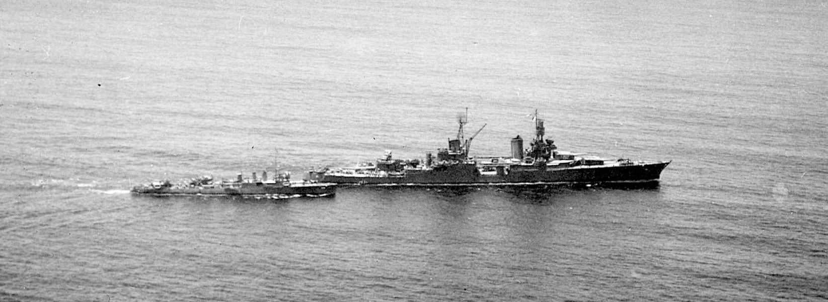 With his former ship only 86 yards in length and having a complement of 135 men, no doubt Robert was overwhelmed when he joined Indy's crew of over 1,200 enlisted and officers. He would need a map to find his way around the ship. For comparison, a photo, below, shows a destroyer alongside Indianapolis. Robert's former ship was smaller than a destroyer.