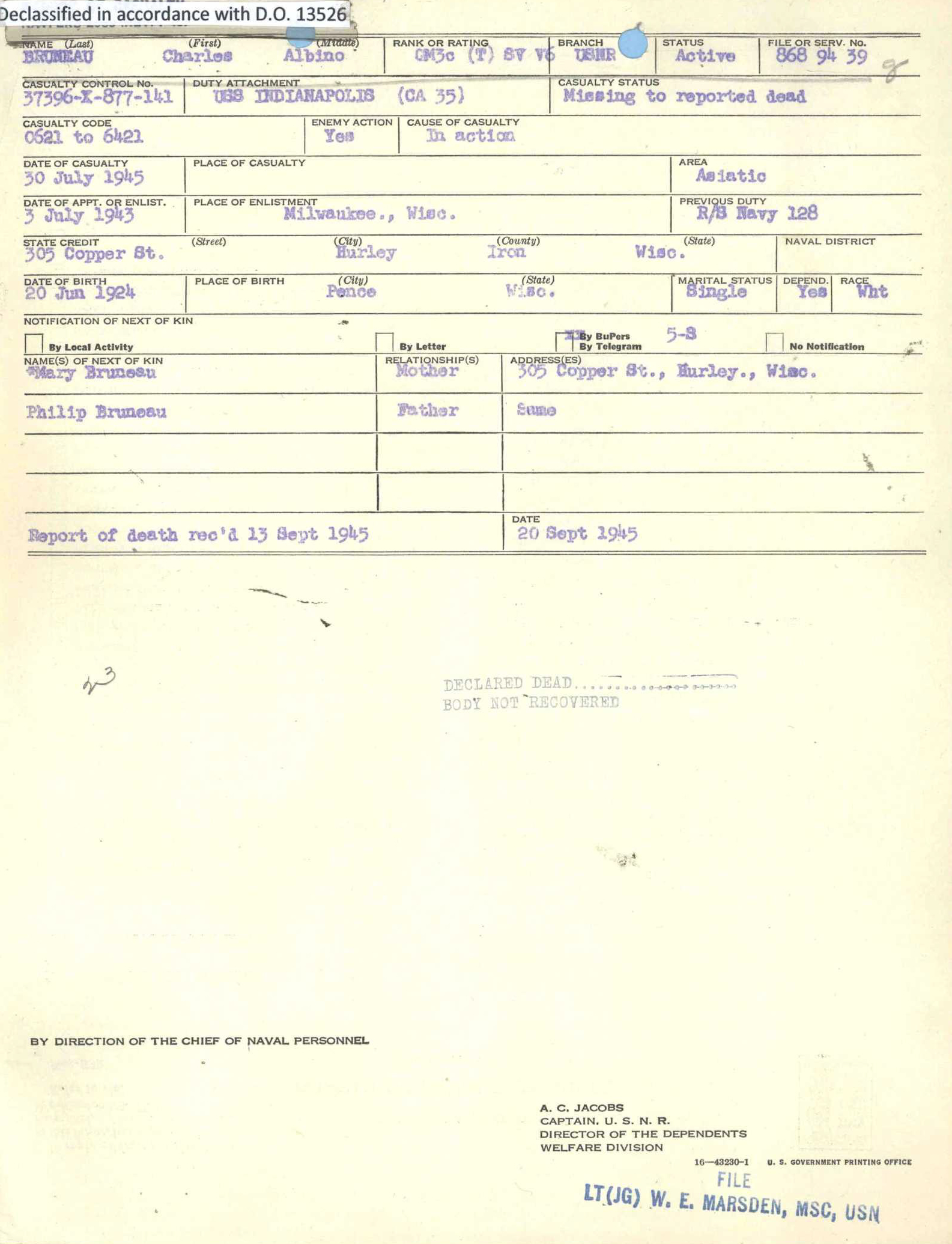 Name: Charles Albino BRUNEAU