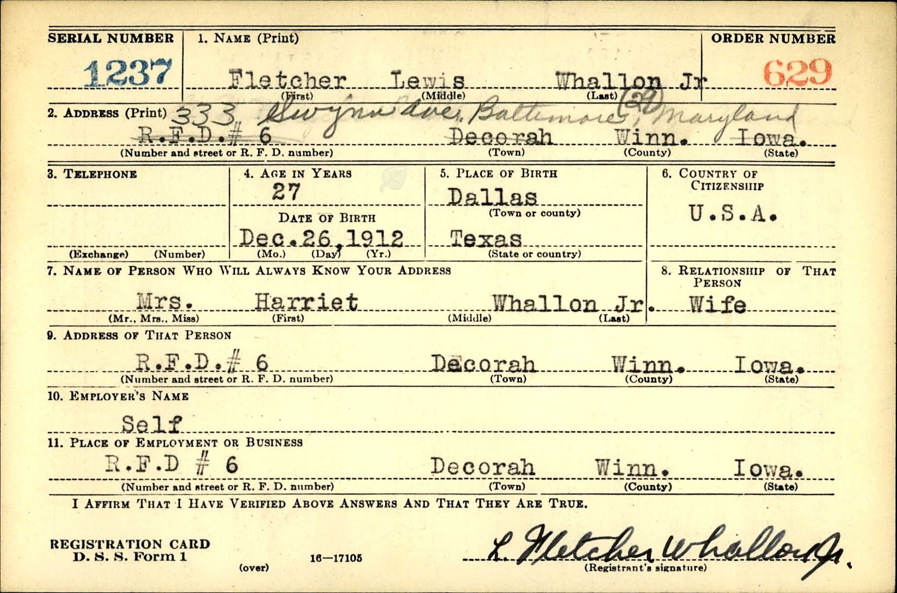 Name: Louis Fletcher WHALLON Jr.