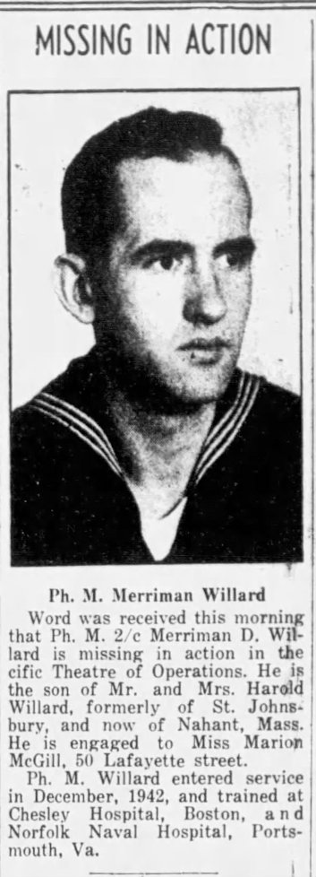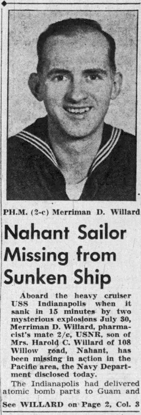 Merriman, or Danny as he was called, was lost at sea during the sinking of Indianapolis on July 30, 1945.
