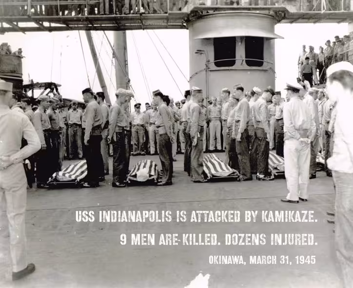 Nine Indianapolis crew were killed March 31, 1945 in the Kamikaze attack: