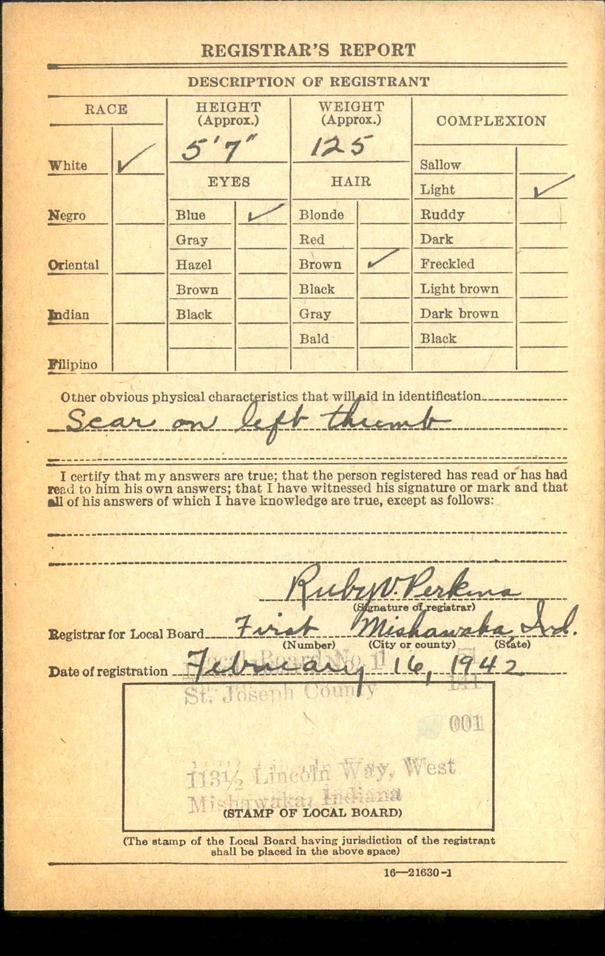 Source CreditsIndiana State Board of Health, Certificate of Birth, # 60700, Regt. No. 399; citing parents Leo Charles Streich and Mary E. Wheeler