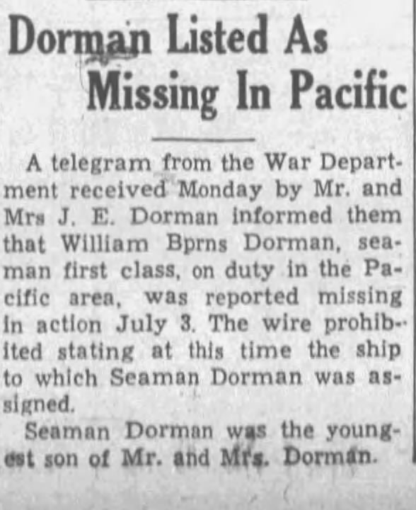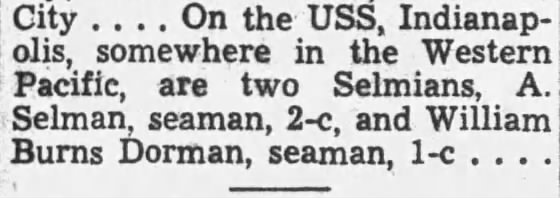 The Selma Times-Journal, (AL), Sun, Jun 17, 1945, p. 30; citing two Selmians on board Indianapolis