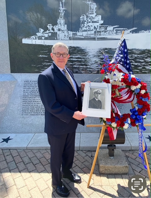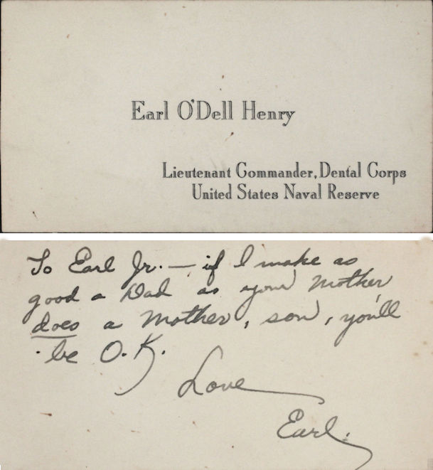 Dr. Henry wrote a message to his son on the back of his officer's card., shown below. Both this letter and card were mailed from Guam as Indy sailed out of port towards her destiny.