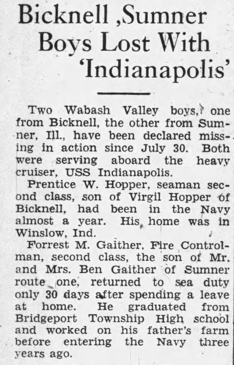 USN USS Indianapolis CA-35 Final Sailing List, 17 Aug 1945; Ancestry database
