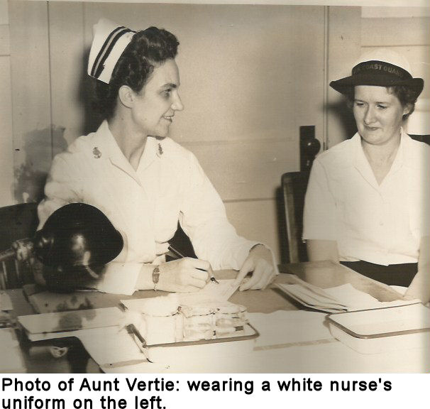 "The two had been friends and he had lost track of her but saw her photo in a Naval publication. She had joined the Navy in the 1940s....I can understand why Pharmacist Mate Houston would have been attracted to my aunt as a friend. She was a lovely person, and from the tone of his letter, he must have been, too!"