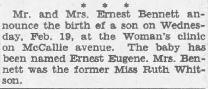 Children: Ernest Eugene and Patsy Bennett