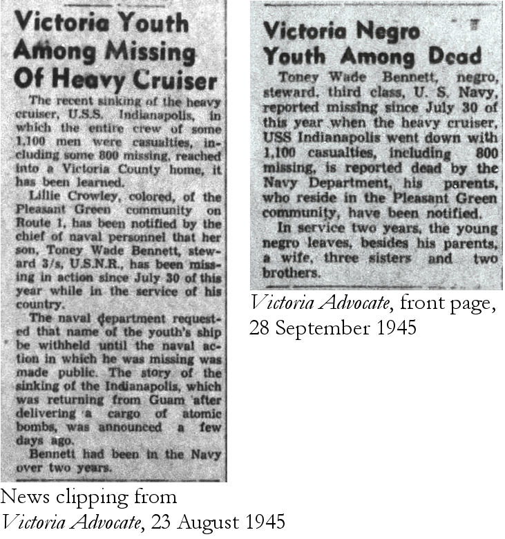 | Toney Wade BENNETT, ST3-Steward Third Class, was one of 28 African-American men who were