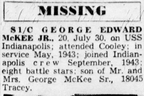 Life was different for his friends and family after July 30, 1945; the Joy was gone. He was dearly missed by the families McKee, Williams, Provenche, Tillman, Kaiser, Ramus and Gruezke.