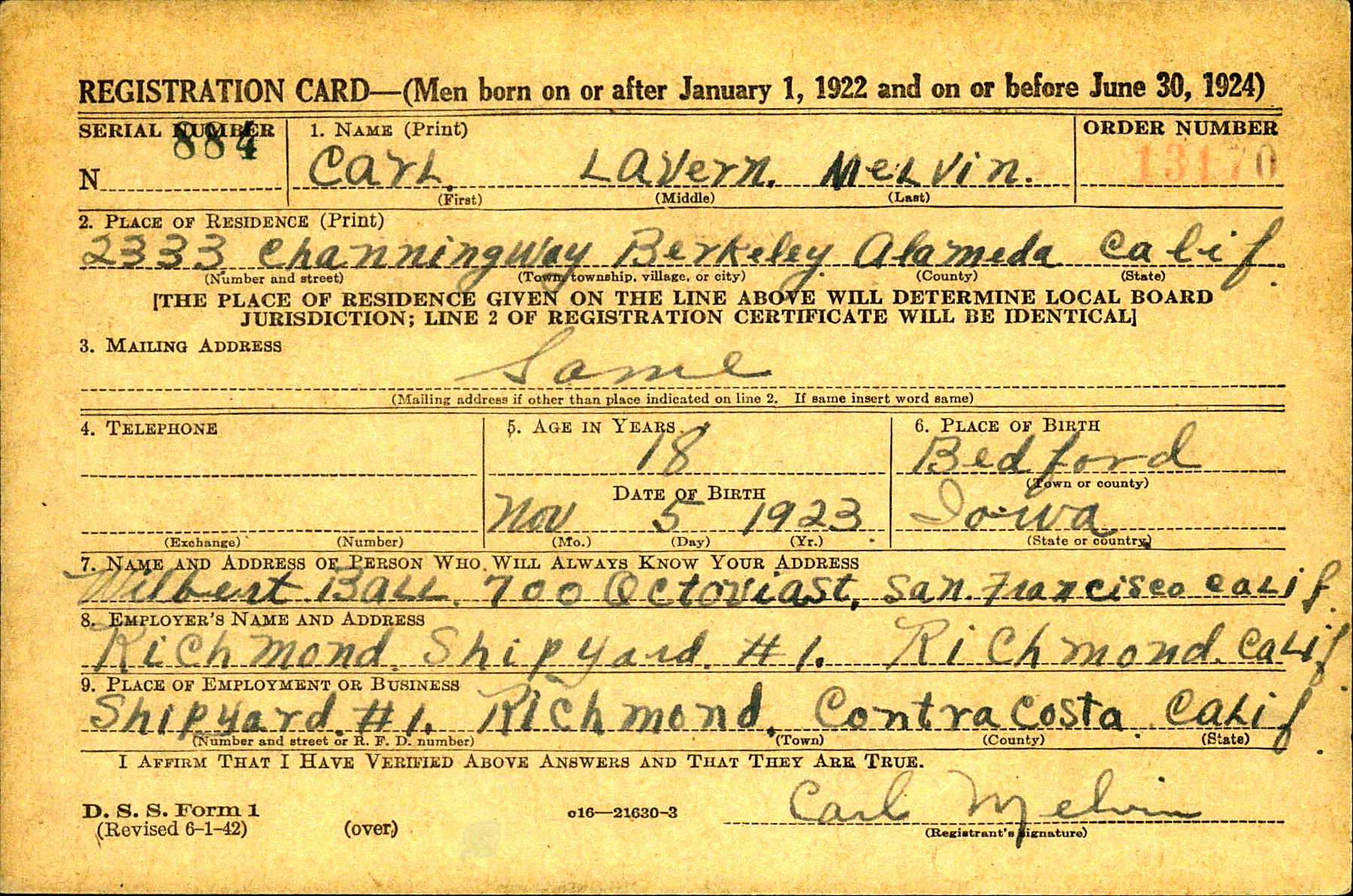 Name: Carl Lavern MELVIN