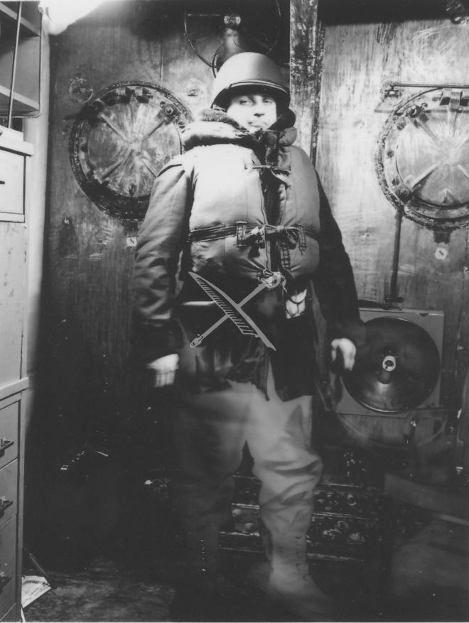Not written in Katherine Moore’s book, but relayed to Earl Henry Jr. by Nickie Sedivi Lancaster, Kasey Moore created a personalized life vest to wear in case Indianapolis should sink. He added survival items such as a fishing line, a knife and fishing hooks. This photo, (above, left) was provided by Nickie Sedivi, niece of Alfred Sedivi, Photographer's Mate First Class, who took the photo.