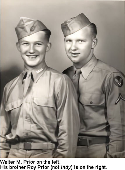 His brother, Roy A. Prior, Jr. (three years older than Walter) served as a Private 1st class - 6th Bomb Group - 40th Bomb Squadron in the Army Air Force. Despite Walter's ultimate enlistment and service as a Seaman Second Class in the US Navy, the photo below in this bio of Walter and Roy Jr., both in military uniform, was a "Fun Time" for the two brothers with both smiling while being dressed up in "Army Air Force" uniforms to make a special memory photo.