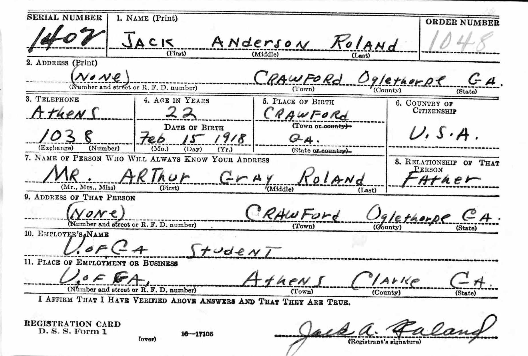 Jack’s parents placed a beautiful headstone in his memory in the Crawford Cemetery in Crawford, GA. The stone is inscribed, “In Loving Memory of our son who sacrificed his life in the great conflict. He rest at sea"