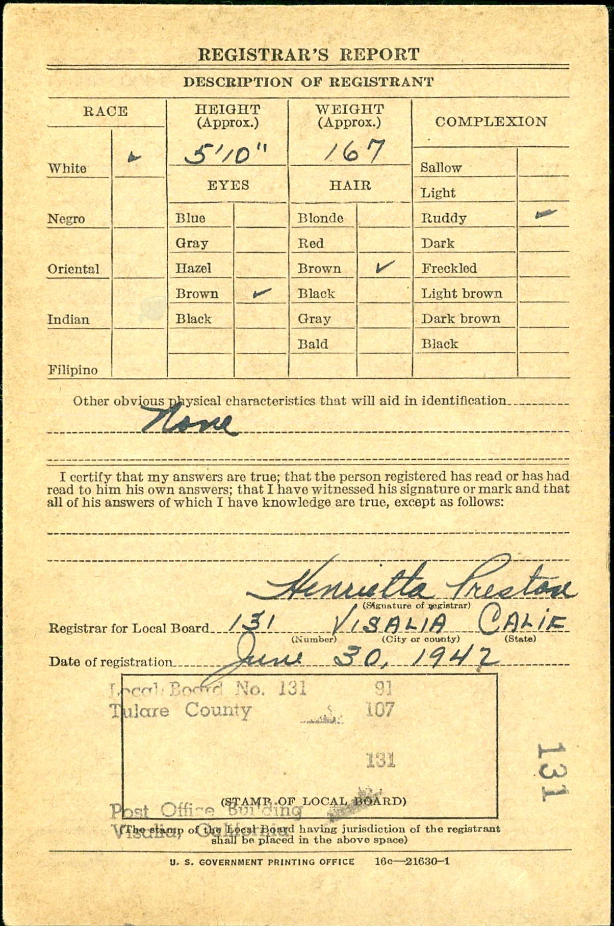 From: Visalia, CA