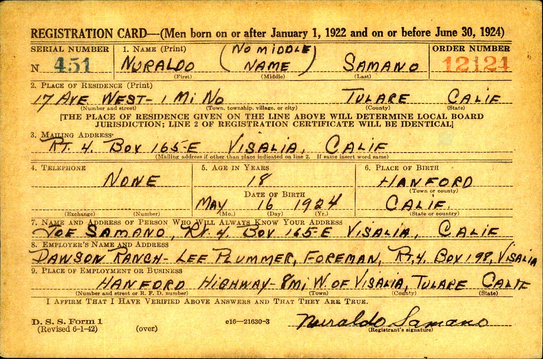 Name: Nuraldo SAMANO