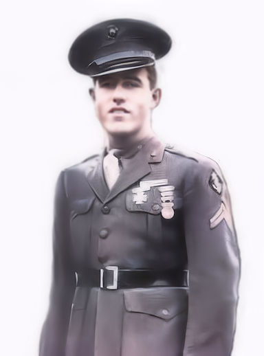 Marine Corps Sergeant Richard I. Tracy Jr. was born on July 14, 1925 to parents: Mr. and Mrs. Richard Irwin Tracy, Sr. He enlisted in the USMC on May 13, 1943. He went aboard USS Indianapolis (CA-35) on October 7, 1943 to join a 39 man Marine Corps company.