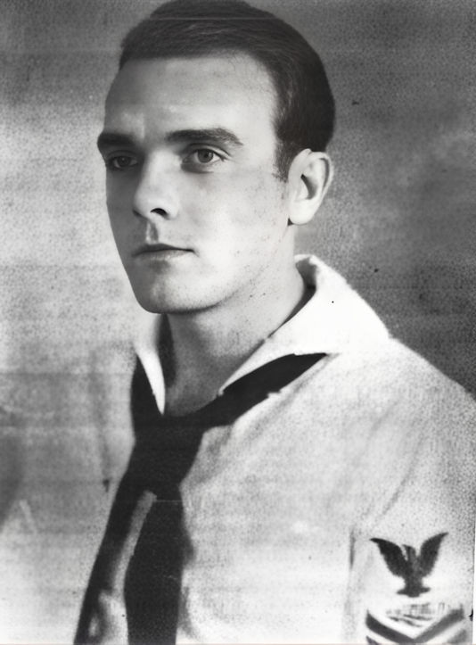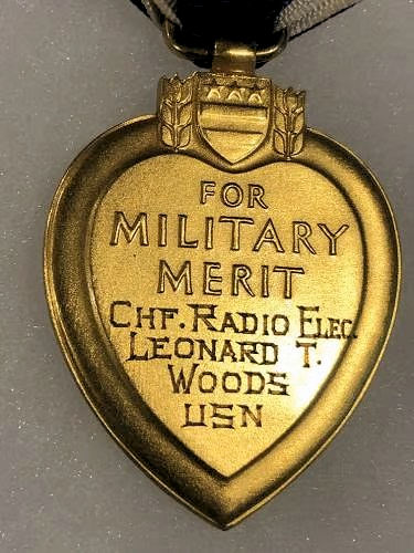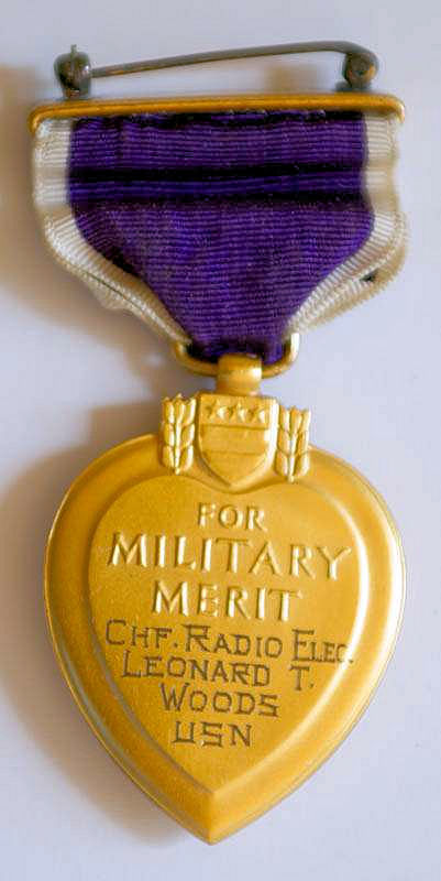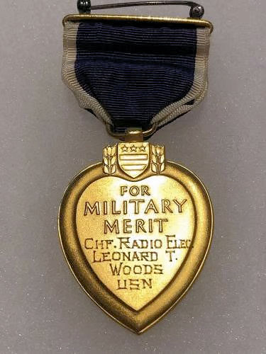 Chief Woods served almost two years aboard Indianapolis. When the ship was torpedoed by a Japanese submarine on July 30, 1945, Leonard’s heroic efforts were remembered by some of the survivors of the sinking.